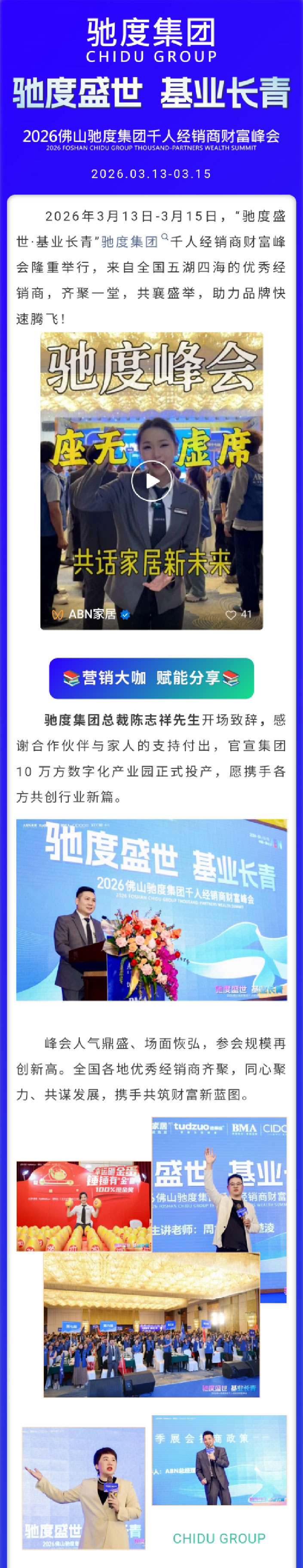 驰度盛世·基业长青 | 千人经销商财富峰会圆满成功